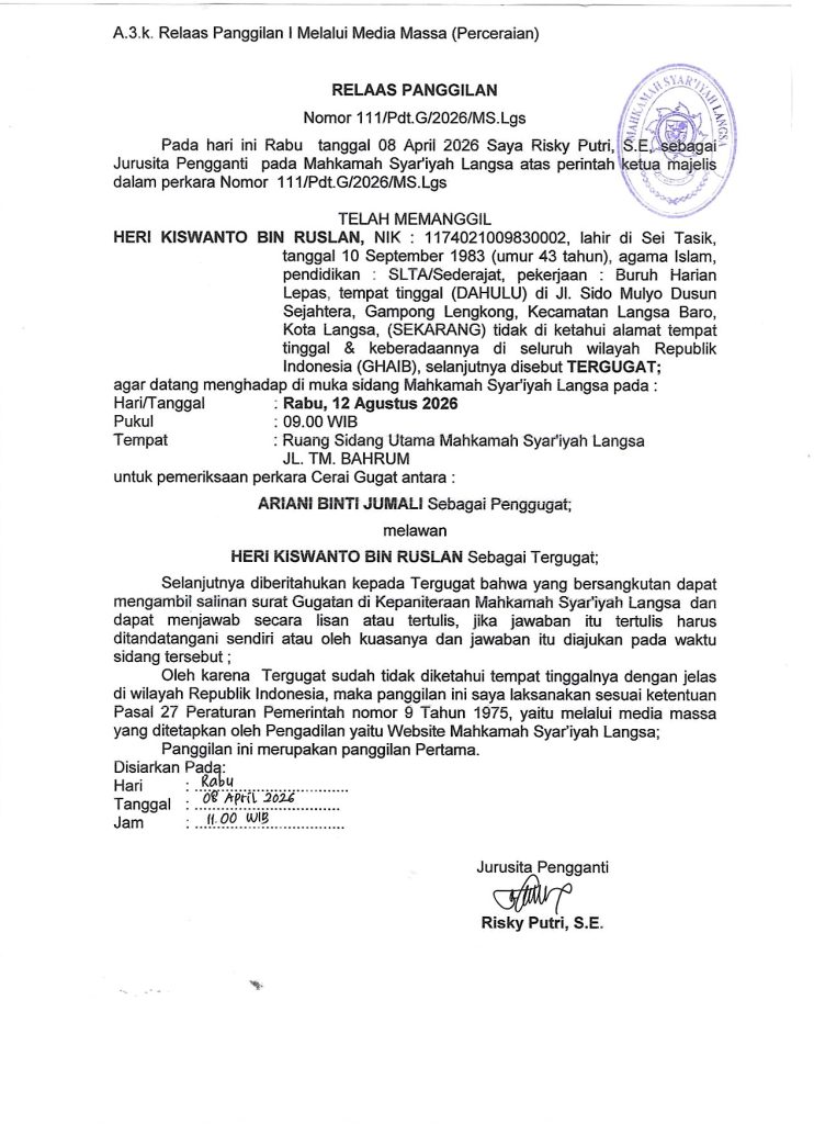 2021 Website Mahkamah Syar'iyah Langsa Team IT ms-langsa