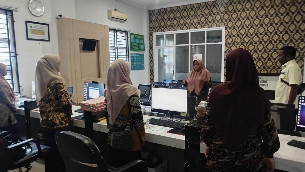 Langsa | ms-langsa.go.id. | Kamis, 9 Oktober 2025, Mahkamah Syar’iyah Langsa kembali menggelar kegiatan rutin briefing pagi bagi para petugas Pelayanan Terpadu Satu Pintu (PTSP) dan petugas keamanan. Bertempat di ruang PTSP kegiatan ini dipimpin oleh Panitera Muda Hukum Ibu Athiatun Zakiah, S.H., dengan mengangkat topik motivasional bertajuk “Tingkatkan Pelayanan dengan Semangat Integritas”.