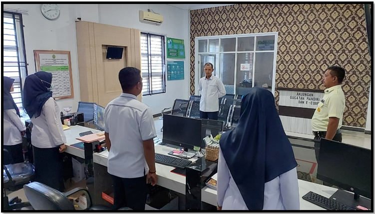 Langsa | ms-langsa.go.id. | Senin, 08 September 2025, Mahkamah Syar’iyah Langsa kembali melaksanakan briefing pagi rutin pada unit Pelayanan Terpadu Satu Pintu (PTSP) sebagai sarana evaluasi sekaligus penguatan pelayanan publik. Kegiatan yang dipimpin oleh Sekretaris Mahkamah Syar`iyah Langsa, Azhari, S.H. M.H., diikuti oleh seluruh petugas PTSP serta petugas keamanan dengan penuh semangat.