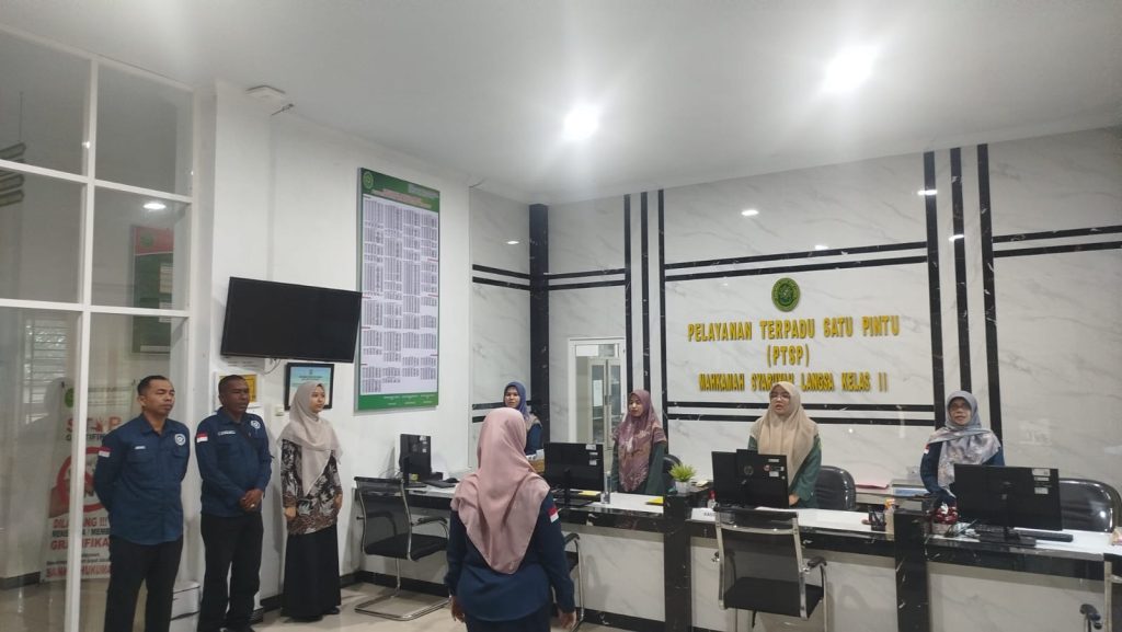 Langsa | ms-langsa.go.id. | Rabu, 12 November 2025, Mahkamah Syar’iyah Langsa kembali menggelar kegiatan rutin briefing pagi bertempat di Ruang Pelayanan Terpadu Satu Pintu (PTSP), diikuti oleh seluruh Petugas PTSP, Petugas Keamanan, Petugas E-Court dan Petugas Posbakum. Kali ini, briefing dipimpin oleh Kepala Sub Bagian Umum dan Keuangan Mahkamah Syar’iyah Langsa Ibu Hayati Ayu Miko, S.E., dengan penekanan utama pada pentingnya memberikan pelayanan yang adil dan tanpa diskriminasi kepada seluruh pencari keadilan.