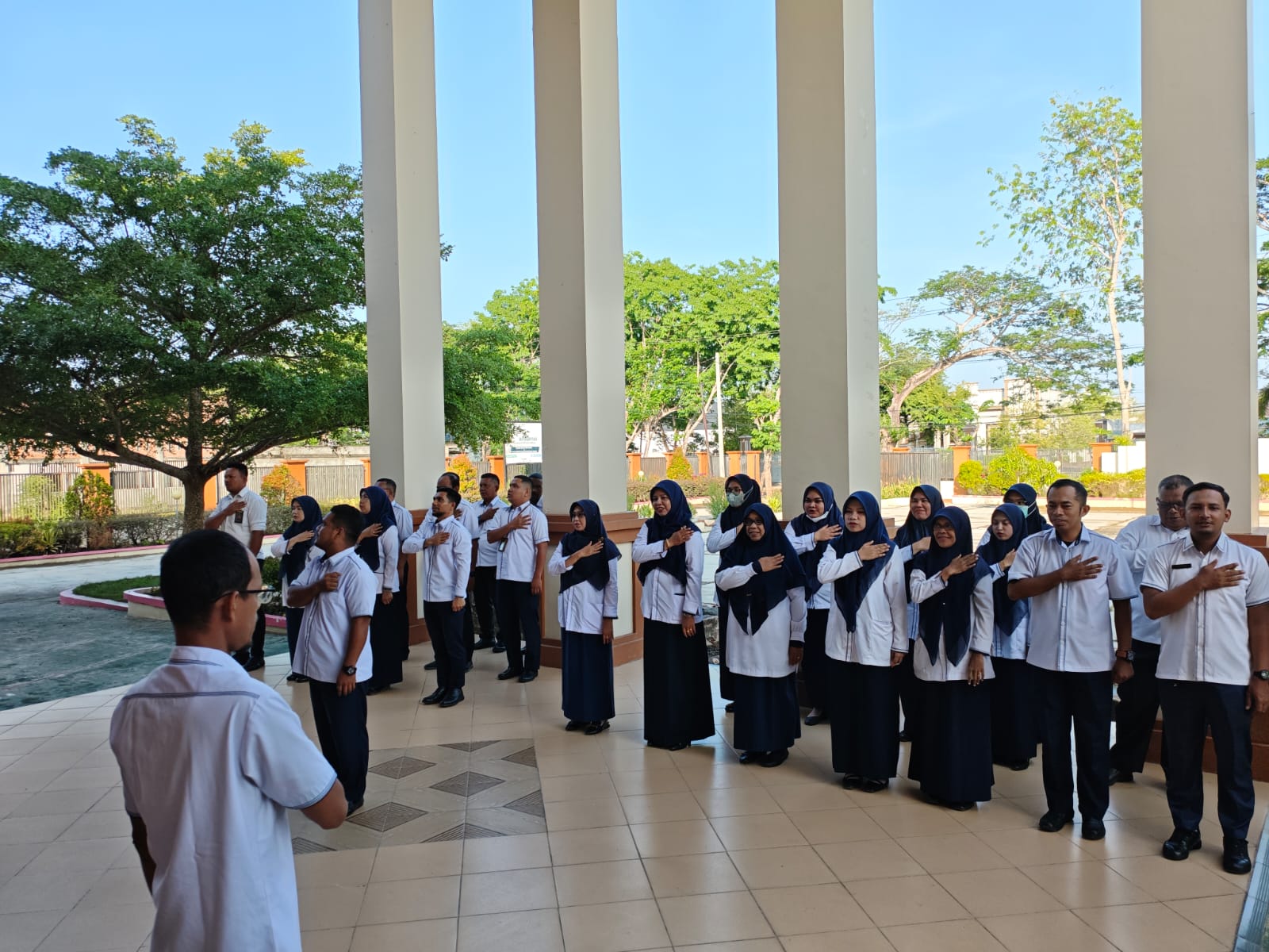 Langsa | ms-langsa.go.id. | Senin, 20 April 2026, Mahkamah Syar’iyah Langsa kembali menggelar apel pagi rutin pada Senin, yang bertempat di halaman kantor. Apel pagi ini dipimpin langsung oleh Ketua Mahkamah Syar’iyah Langsa, Ibu Fadhilah Halim, S.H.I., M.H., dan diikuti oleh seluruh jajaran hakim, pejabat struktural, fungsional, PPPK, hingga staf.