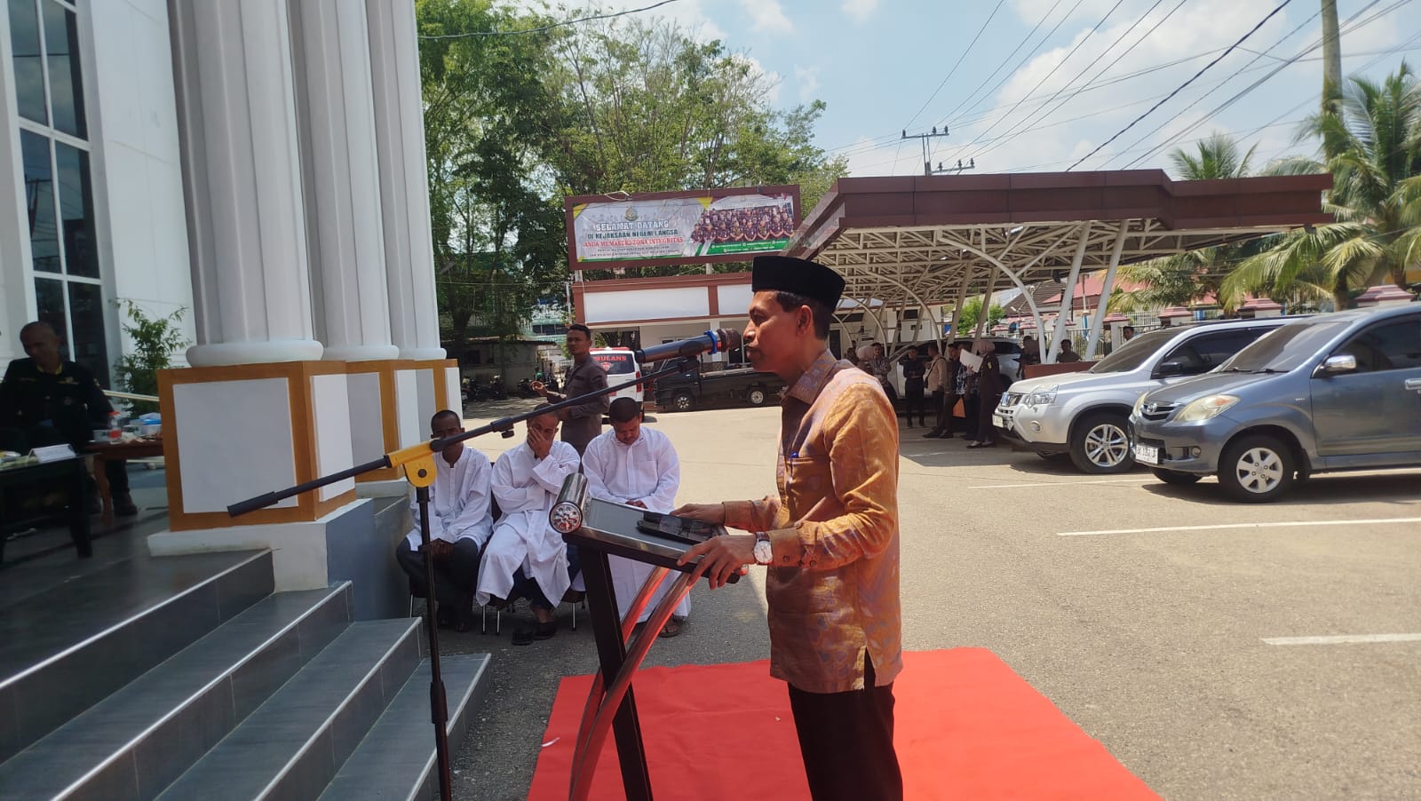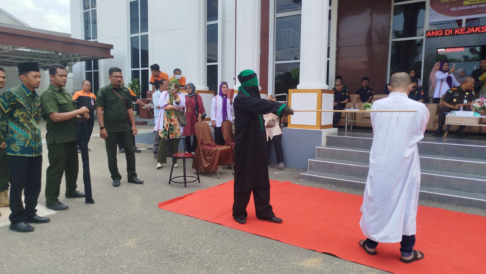 Langsa | ms-langsa.go.id | Kamis, 24 April 2026, Pelaksanaan eksekusi Uqubat Cambuk terhadap 4 (empat) orang terpidana dengan kasus maisir (perjudian) dinyatakan terbukti melanggar Pasal 18 Qanun Aceh Nomor 12 Tahun 2025 tentang Perubahan atas Qanun Aceh Nomor 6 Tahun 2014 tentang Hukum Jinayat. tentang hukum jinayat. digelar di Halaman Kantor Kejaksaan Negeri (Kejari) Langsa. Kegiatan yang dimulai pukul 11.00 WIB ini merupakan tindak lanjut dari putusan Mahkamah Syar’iyah Langsa yang telah berkekuatan hukum tetap (BHT).