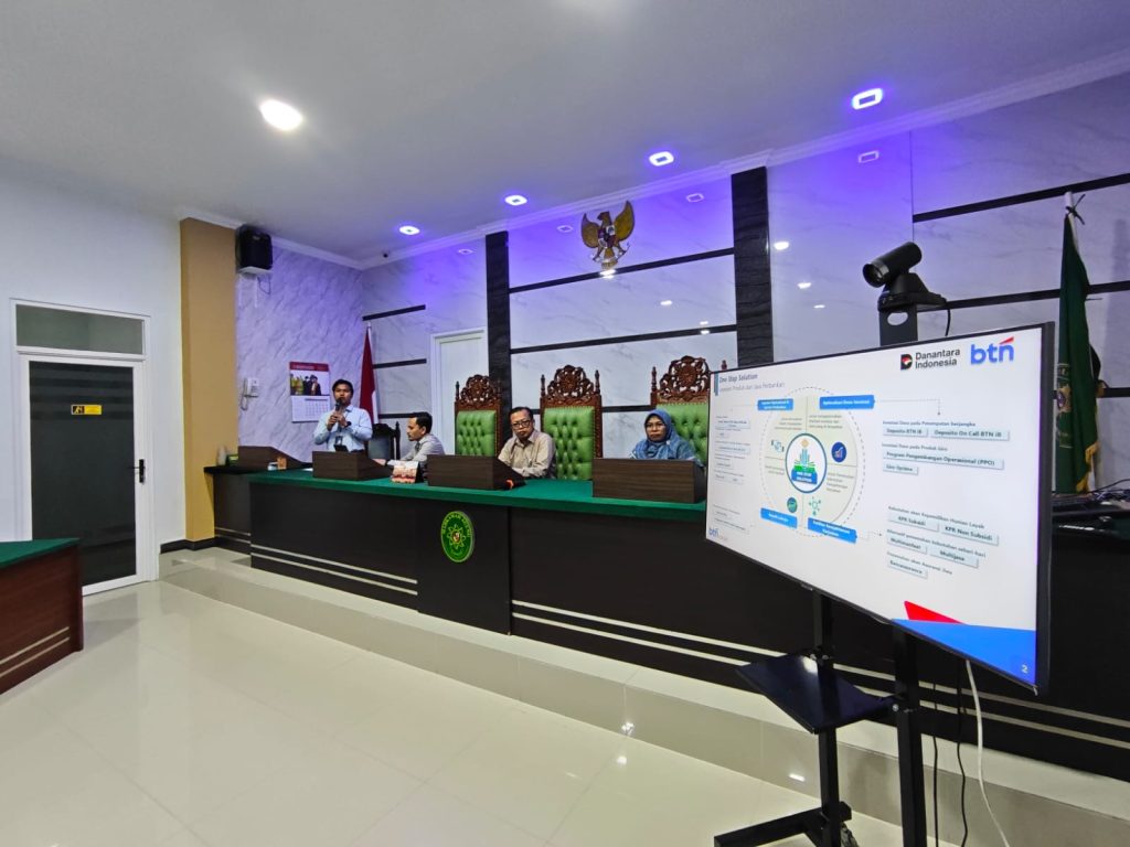 Langsa | ms-langsa.go.id. | Senin, 20 Oktober 2025, Mahkamah Syar’iyah Langsa menerima kunjungan dari PT. Bank Tabungan Negara Syariah (Persero), Tbk Cabang Lhokseumawe dalam rangka sosialisasi untuk memperkenalkan produk, layanan, dan program perbankan syariah di Mahkamah Syar’iyah Langsa. Kegiatan dilaksanakan di ruang sidang utama Mahkamah Syar’iyah Langsa pukul 09.30 Wib diikuti oleh seluruh aparatur Mahkamah Syar’iyah Langsa.