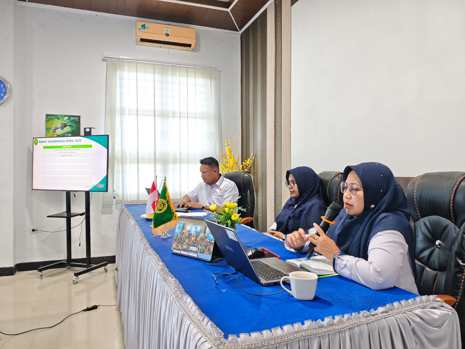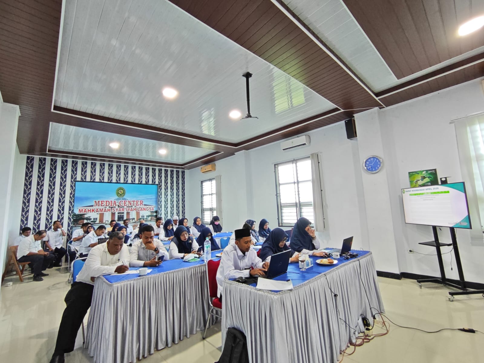 Langsa | ms-langsa.go.id. | Senin, 13 April 2026, Mahkamah Syar’iyah Langsa menggelar Rapat Koordinasi rutin untuk bulan April 2026 yang bertempat di Ruang Media Center MS Langsa. Rapat dipimpin langsung oleh Ketua Mahkamah Syar’iyah Langsa, Ibu Fadhilah Halim, S.H.I., M.H., dan dihadiri oleh Hakim, Panitera, Sekretaris, serta seluruh staf dan PPPK, guna menyelaraskan langkah dalam mencapai target organisasi tahun ini.