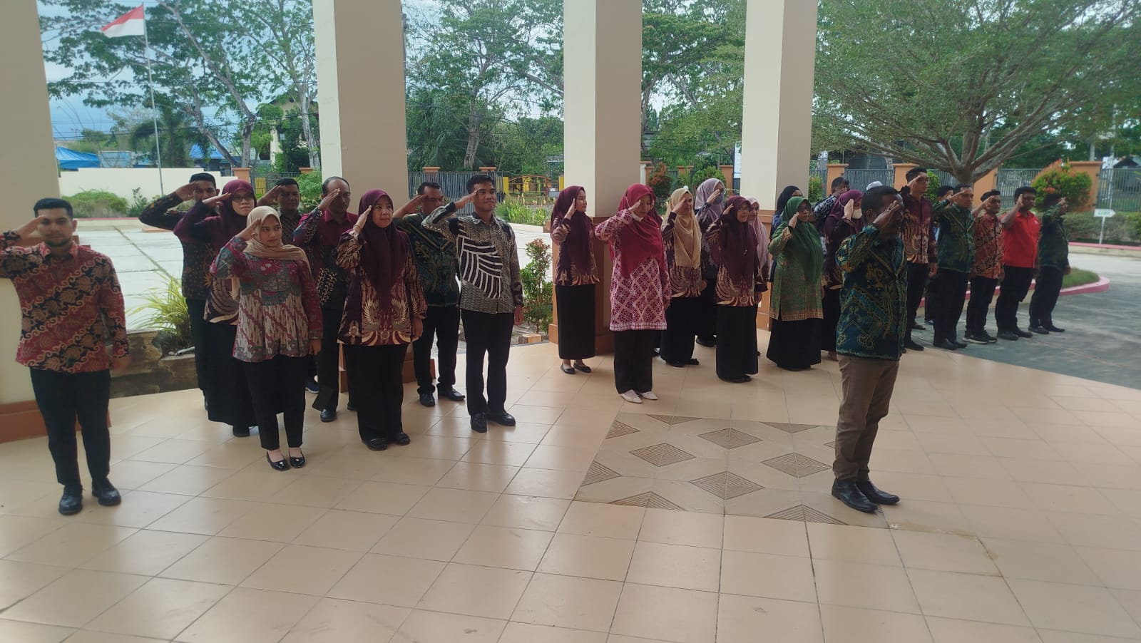Langsa | ms-langsa.go.id. | Jum’at, 10 April 2026, Seluruh aparatur Mahkamah Syar’iyah Langsa melaksanakan apel rutin Jumat sore di halaman kantor sebagai penutup aktivitas kerja selama sepekan. Kegiatan yang berlangsung khidmat ini bertujuan untuk mengevaluasi kinerja, mempererat kebersamaan, dan memberikan motivasi spiritual menjelang akhir pekan. Apel sore kali ini dipimpin langsung oleh Ketua Mahkamah Syar’iyah Langsa Ibu Fadhilah Halim, S.H.I., M.H., diikuti oleh Seluruh Hakim, Pejabat Struktural, Fungsional, dan PPPK mengikuti apel dengan tertib dan disiplin.