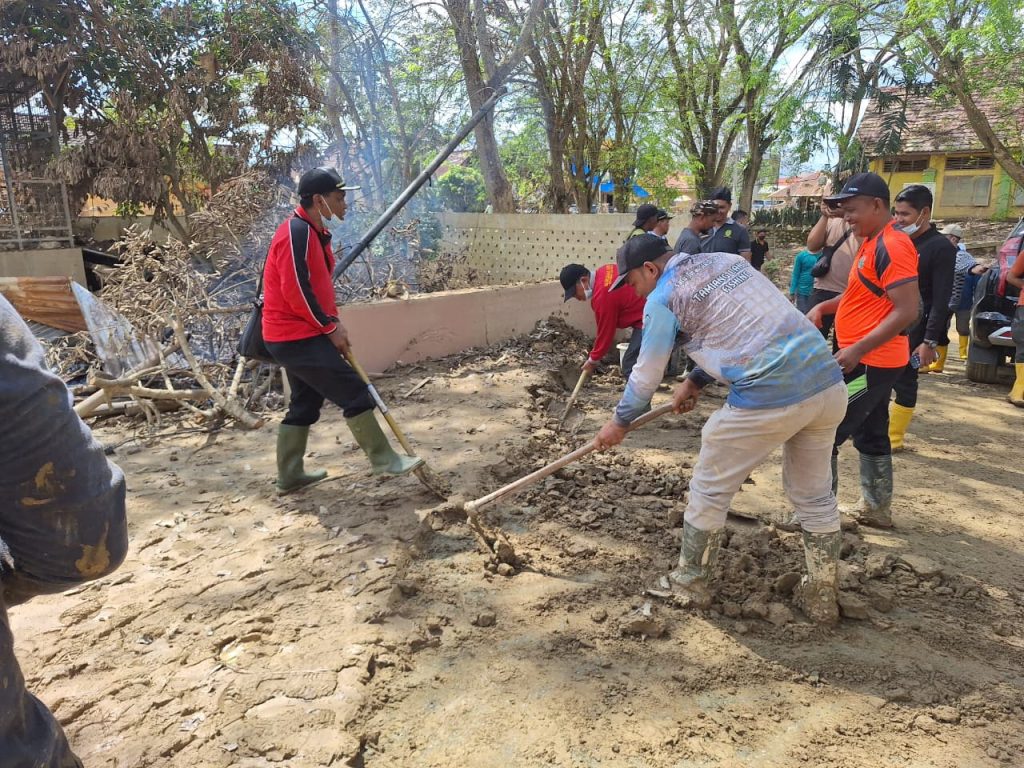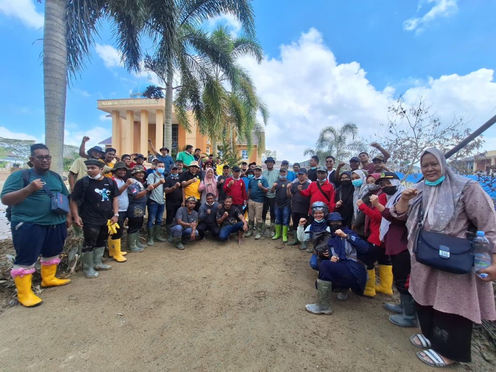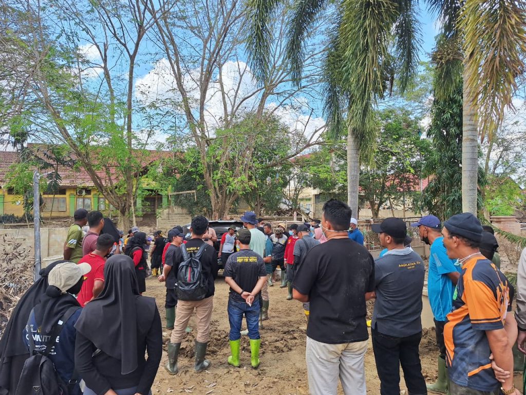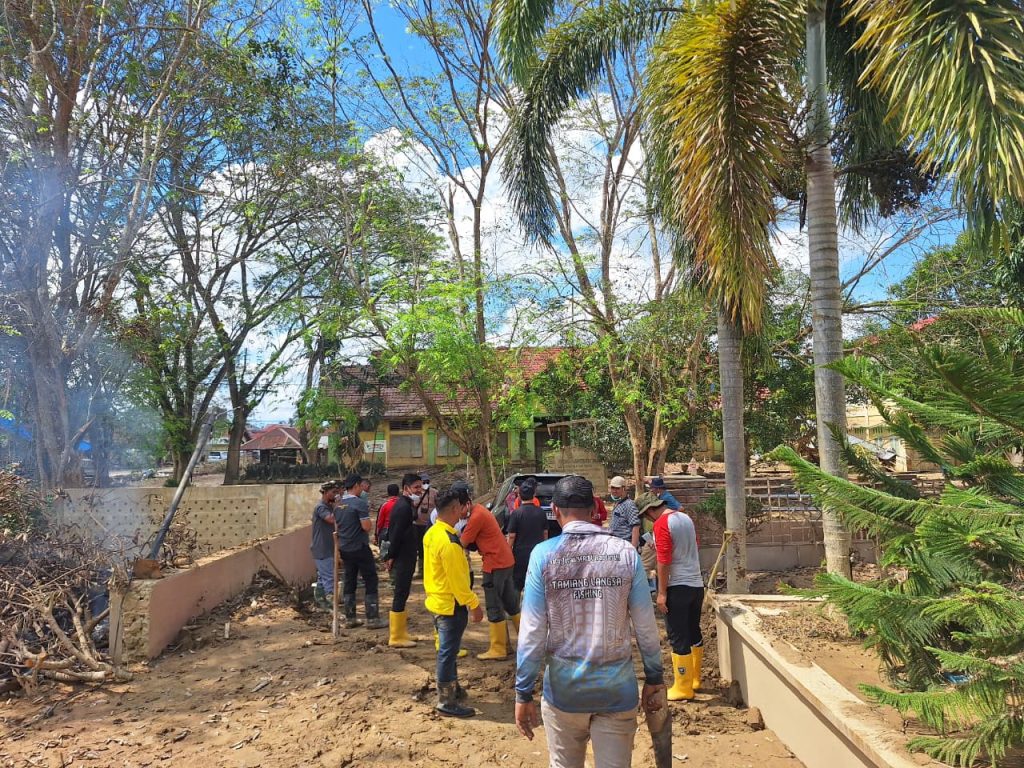 Dengan membawa peralatan kebersihan lengkap, para relawan bekerja ekstra untuk membersihkan sisa lumpur dan sampah di seluruh ruangan dan menyelamatkan dokumen-dokumen penting yang masih bisa dievakuasi. selain Kantor para relawan juga membersihkan rumah dinas Mahkamah Syar’iyah Kuala Simpang yang turut terendam banjir.